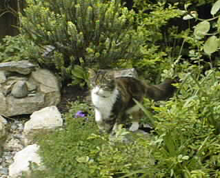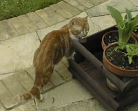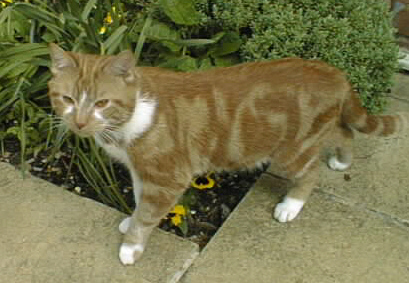 photo was taken last year and shows the family minus latest additions - two cats. Tommy - a typical Ginger tom. Well in most respects! Tortia (or Tortilla?) is a tortoise shell/tabby. A little female cat - but still the boss. |